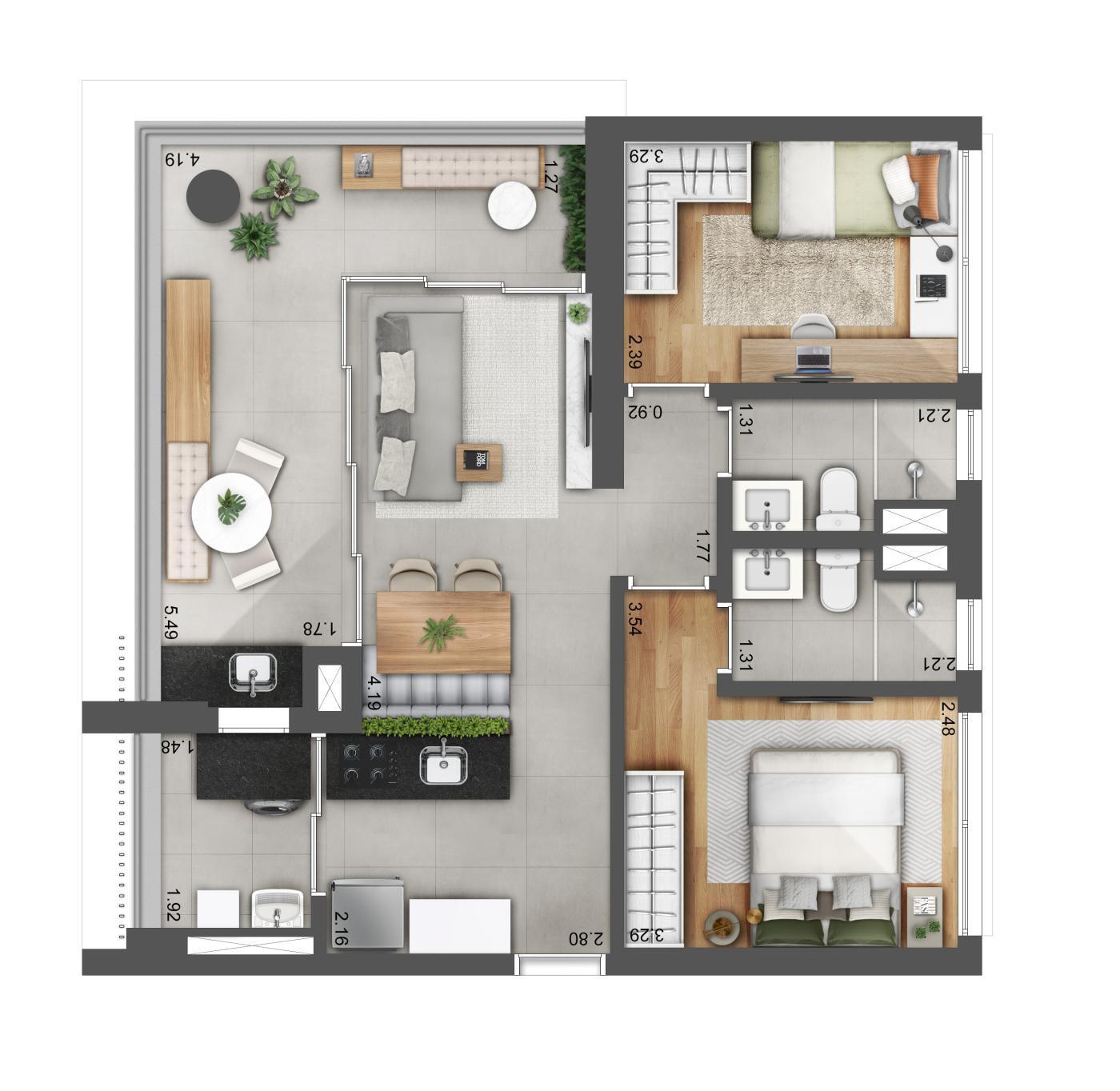 70 a 11m² 2 e 3 Dormitórios