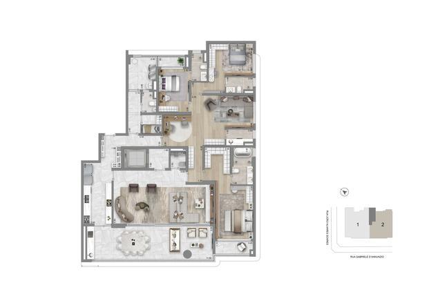 Com apartamentos de *269m²* e *341m², cada um com 3 ou 4 suítes, a Casa Gabriele Cyrela oferece espaço e conforto para todos os gostos. As coberturas ainda mais imponentes, com **531m²* e *645m²*, garantem privacidade e tranquilidade.
