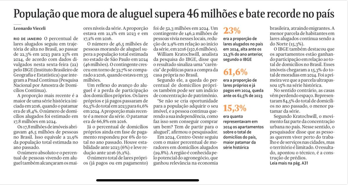 Segundo matéria publicada hoje (23/08/2025) pela Folha de S. Paulo, o número de pessoas que moram de aluguel no Brasil bateu recorde e já ultrapassa os 46 milhões. Desde o início da série histórica da Penad (2016), esse número só cresce — e mostra como o sonho da casa própria continua sendo prioridade para muitas famílias.